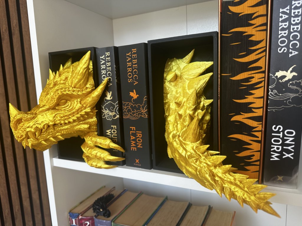 Preneste sa do sveta fantázie s naším exkluzívnym 3D tlačeným Book Nookom, inšpirovaným epickou sériou Fourth Wing. Tento jedinečný dekoratívny prvok, navrhnutý pre milovníkov kníh a fantasy žánru, premení vašu knižnicu na miesto plné mágie a dobrodružstva. Detailne spracovaná dračia hlava a chvost, vytlačené pomocou najmodernejšej 3D tlačovej technológie, dodajú vašim obľúbeným knihám štýlový a originálny vzhľad.